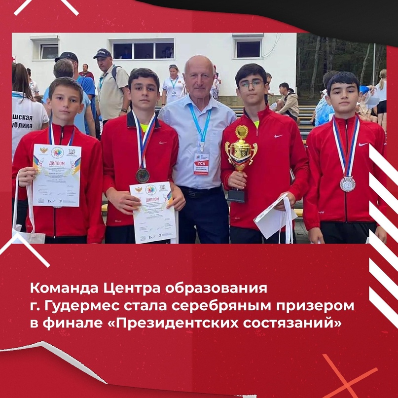 26.09.2023Финальный этап Всероссийских спортивных соревнований школьников «Президентские состязания» проходит в ВДЦ «Орлёнок» с 7 по 27 сентября 2023 года. Его участниками стали 1518 школьников в составе команд 5-х классов городских и сельских общеобразовательных организаций из 87 субъектов РФ, в том числе из Донецкой и Луганской Народных Республик.Команда ГБОУ «Центр образования города Гудермес» из Чеченской Республики забрала второе место в соревнованиях по баскетболу среди городских класс-команд (мальчики). Участникам, набравшим наибольшее количество баллов в теоретическом конкурсе, вручили индивидуальные призы.Сегодня, на базе Всероссийского детского центра «Орлёнок» состоялась промежуточная церемония награждения «Всероссийских президентских состязаний» среди городских и сельских класс-команд. Ребята забрали кубки и дипломы за 1-3 места по дополнительным видам спорта: бадминтон, баскетбол, пулевая стрельба, теоретический конкурс.Напомним, что данные соревнованияявляются частью федерального проекта «Спорт - норма жизни», который призван привлечь детей к регулярным занятиям физической культурой и спортом, способствовать всестороннему и гармоничному развитию личности.Поздравляем наших призеров! Желаем не останавливаться на достигнутом и стремится к новым успехам!