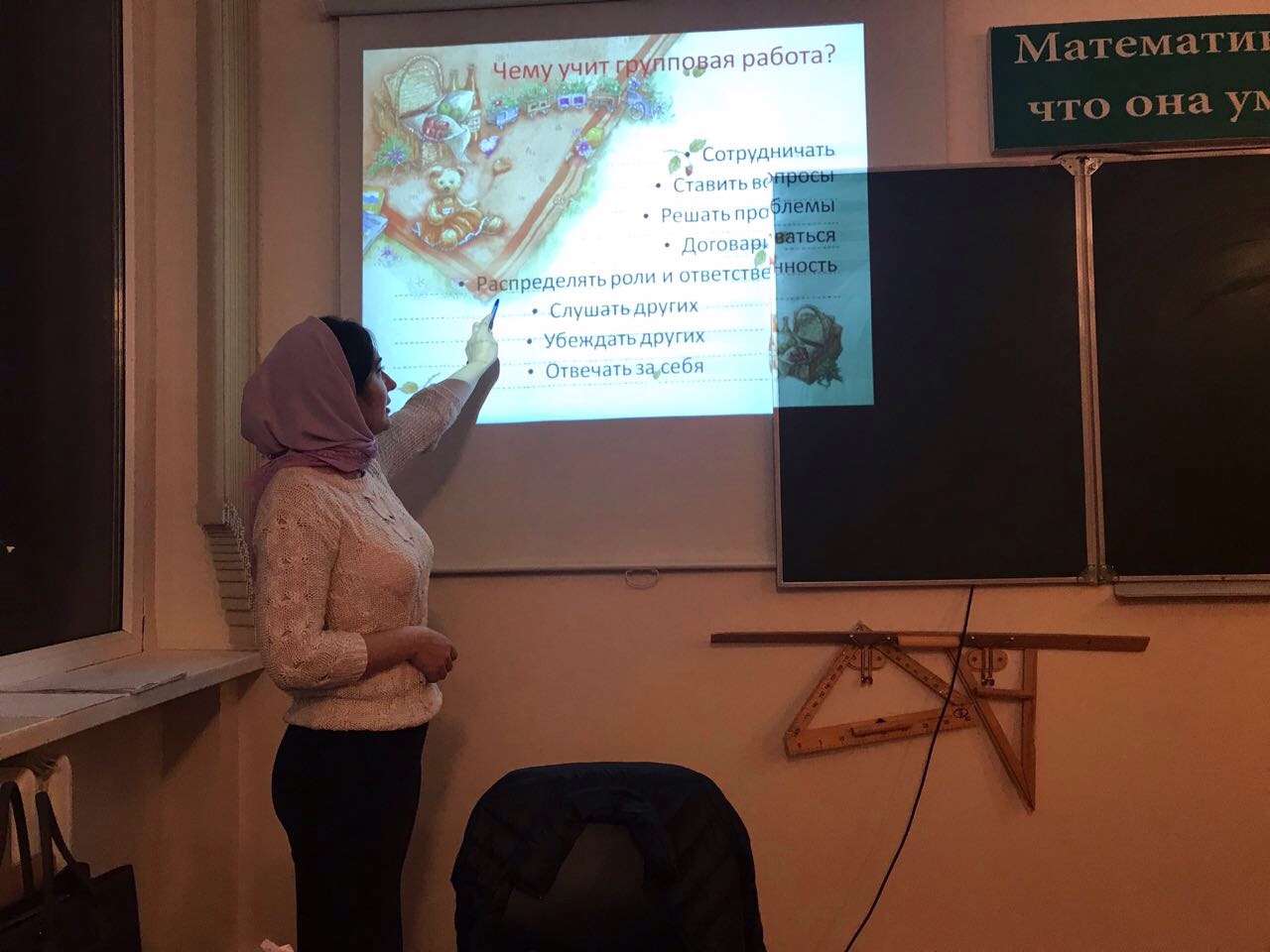 21.11.201721 ноября 2017 года в МБОУ Первомайская СОШ Грозненского муниципального района в рамках проекта РСУР, состоялся методический семинар учителя математики Озниевой А.У.. Тема семинара «Организация парной и групповой работы на уроках математики». Теоретическая часть семинара была представлена в виде презентации, в которой были изложены принципы парной и групповой работы на уроках математики. Озниева А.У. перечислила принципы успешного проведения парной и групповой работы. В практической части семинара учителя математики писали контрольную работу на тему «Преобразование рациональных выражений». Контрольная работа состояла из трех заданий. Все учителя справились.