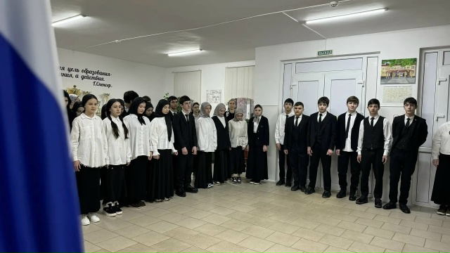 26 января 2026 года в школе прошла торжественная линейка, посвященная внесению Государственных флагов Российской Федерации и Чеченской Республики.