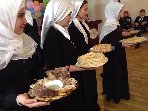 Девушкам – горянкам всегда были присущи такие качества, как вера, преданность, доброжелательность, уважение, скромность… Чеченские девушки всегда были символом чистоты, высокого интеллекта и достоинства. Данный конкурс проводится в целях воспитания в девушках чувств национального самосознания и преемственности поколений на примерах лучших образцов традиционной народной культуры; сохранения традиционного образа девушки-горянки; популяризации и пропаганды вайнахской семьи, как ячейки и основы общества; формирования у нынешнего поколения норм и образцов достойного поведения, привития им нравственных качеств и эстетических вкусов. Конкурс проходит по 5 номинациям: 1. Духовно-нравственная основа: знание, соблюдение и уровень причастности девушек к духовным традициям народа; 2. Знание истории и культуры народа: рода, семьи, их наследия; 3. Творческие таланты: хореография и вокал; 4. «Нохчийн тоьлла кхача»5. Синкъерам. Участницами конкурса стали ученицы 9-11 классов. Оценки ставились по таким критериям, как интеллект, ум, навыки, нормы поведения в быту и в обществе, морально-нравственный уровень. В итоге жюри определило трех участниц, ими стали: Альтемирова Аминат – ученица 10 «А» класса, Дурдышова Сабина – ученица 9 «А» класса, Арсанукаева Хапта – ученица 11 «Б» класса.